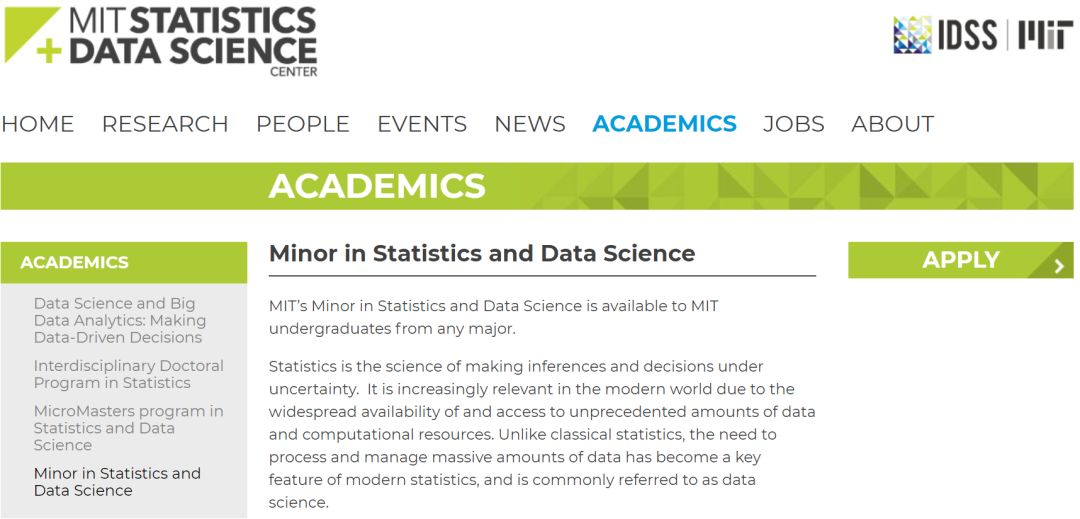 麻省理工学院统计与数据科学的辅修课程对任何专业的本科生都开放。统计与数据科学辅修课程的重点是为学生提供统计、概率和计算方面的工作知识库,以及进行数据分析的能力。选择该课程项目的同学需通过六门必修课程。