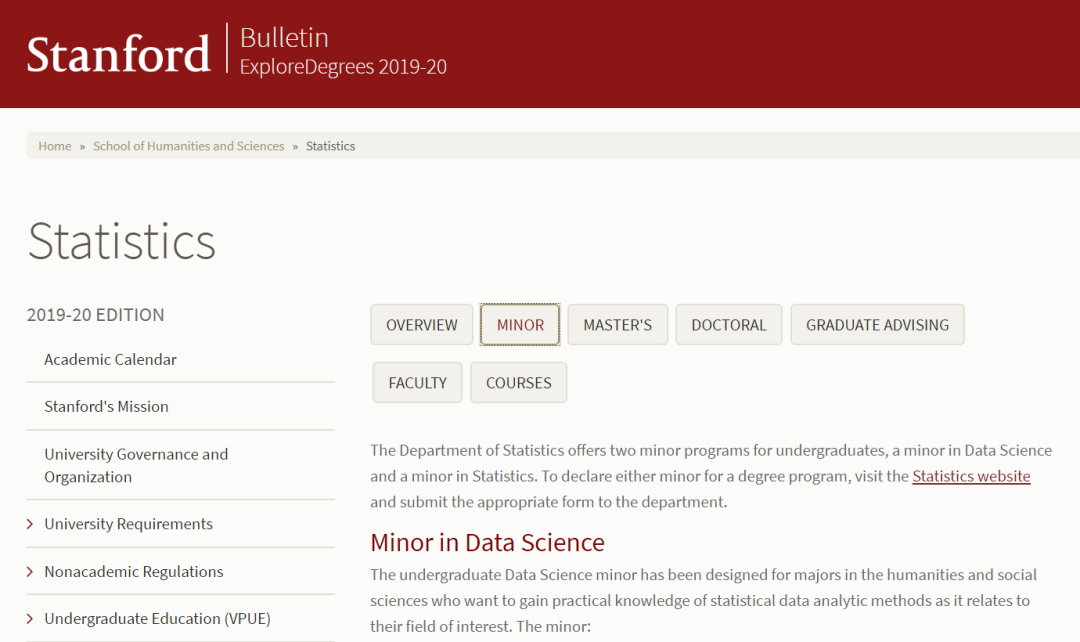 斯坦福的本科数据科学辅修课程是为人文和社会科学专业的学生设计的,他们希望获得与他们的兴趣领域相关的统计数据分析方法的实践知识,不需要有编程或统计背景。