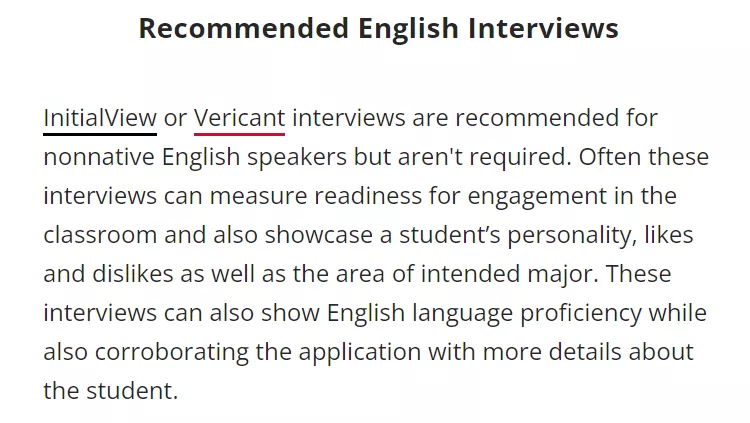 建议非英语母语人士进行InitialView或Vericant面试,但这不是必需的。