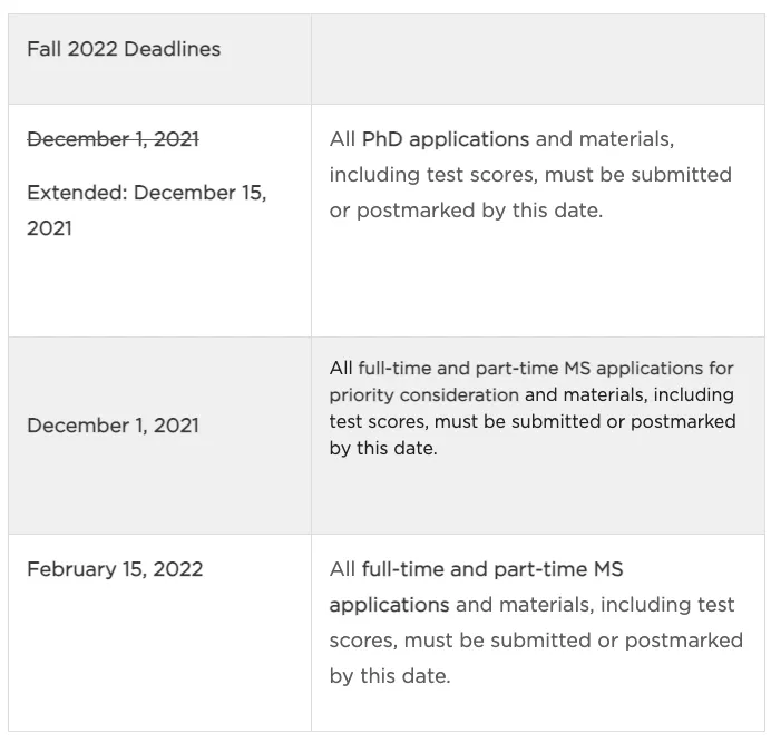 像纽约大学Tanon工程学院申请l是2021年2月15日,而此前Priority l为2020年12月1日,相差两个半月时间。