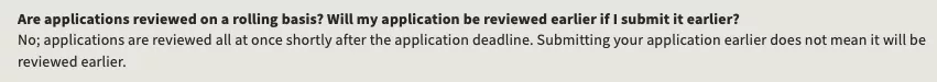 在每个截止时间后,都会有一批录取通知发出。 在硬性条件达标的情况下,早申请的人会有优势,申请成功率也较高。