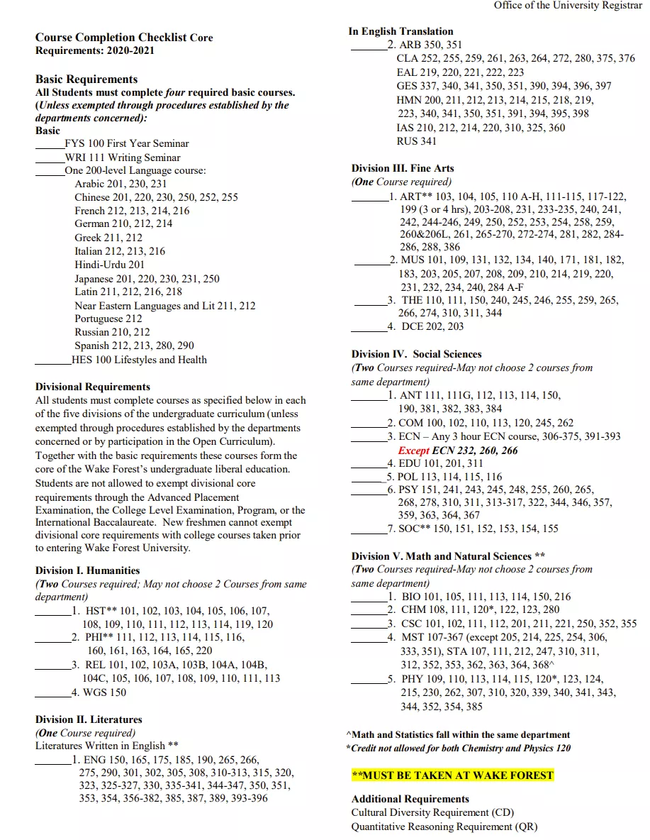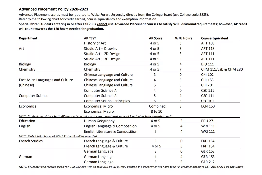 维克森林大学换分政策及对应ivisional requirement(来源:WFU官网)