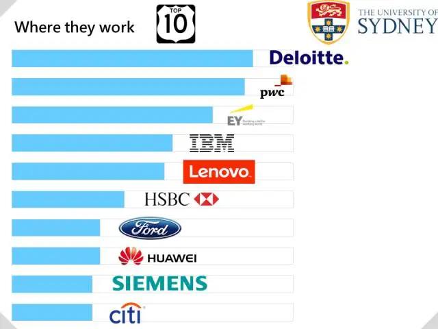 德勤(四大会计事务所之一)的主要职员来自于蒙纳士大学、墨尔本大学、悉尼大学、悉尼新南威尔士大学、悉尼科技大学、麦考瑞大学,和PwC的在职员工教育背景大致相同。