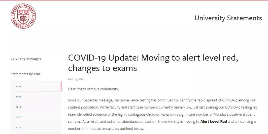 康奈尔大学对于本次疫情的反弹,禁止游客进入校园,图书馆、食堂已经关闭,体育比赛被取消,且所有的期末考试都被安排在线上进行,并宣布停止线下授课,重返网课模式。
