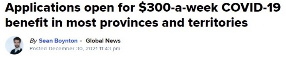加拿大联邦政府周四(12月30日)表示,在将大多数省份和地区添加到符合资格名单后,现已开放申请扩大版的加拿大工人封锁措施福利(Canaa Worker Lockown Benefit,CWLB),每周最高可领$300元,税后到手$270元。