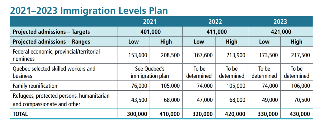 根据这份在2020年底定下的三年目标,2022年移民群体将由以下几个部分组成: