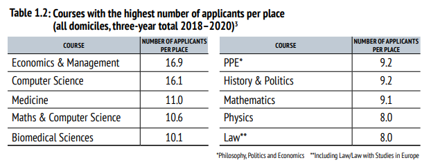 2018-2020年,牛津大学三年报录比最高的专业是经济与管理专业、计算机科学专业、药学专业。