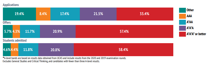 2020年,超过90%的牛津录取学生,A-level成绩不低于AAA。