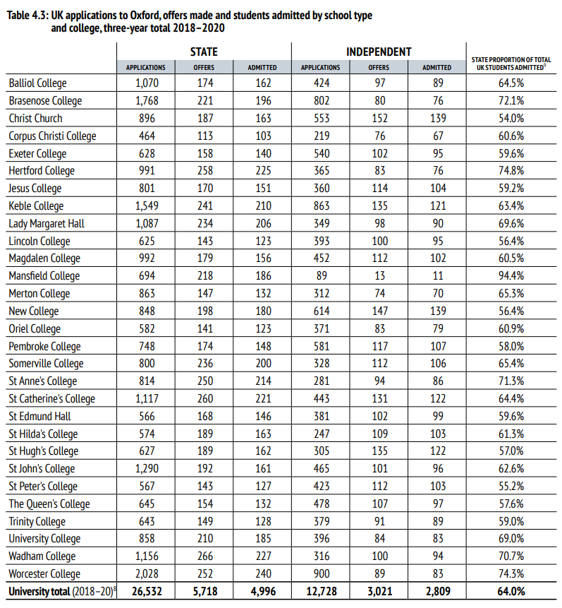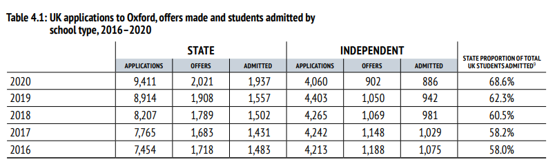 2020年,牛津大学录取的公立学校学生比例达到68.6%,这是大学有记录以来,牛津大学公立学生比例最高的一年。