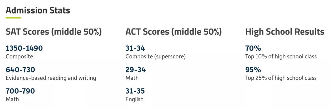 CWRU 去年录取学生的 SAT 均分是 1350-1490,ACT 均分是 31-34,有 70% 的人在高中排名班级前十。