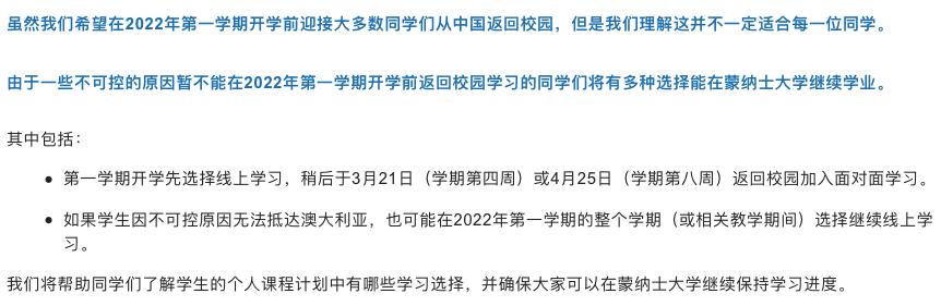 当时我们也和大家解释了,莫纳什并没有强制所有专业的同学回学校上课。