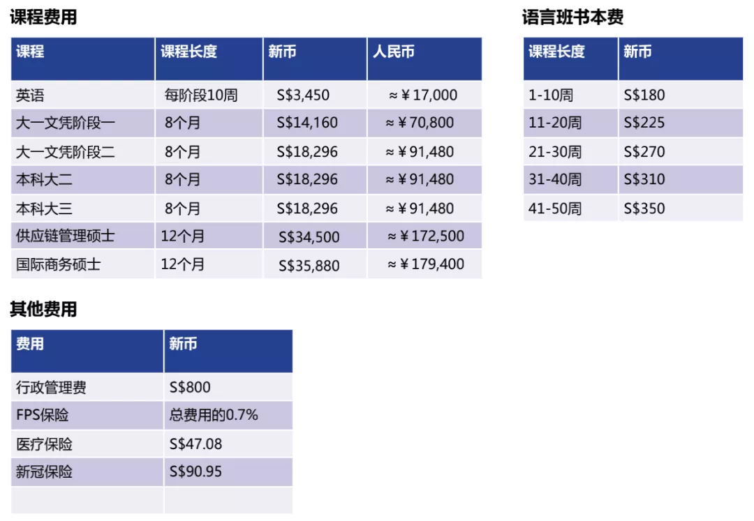 科廷新加坡校区,本科2年制(不包含预科),学费约26万RMB;硕士1年制,约17万RMB;