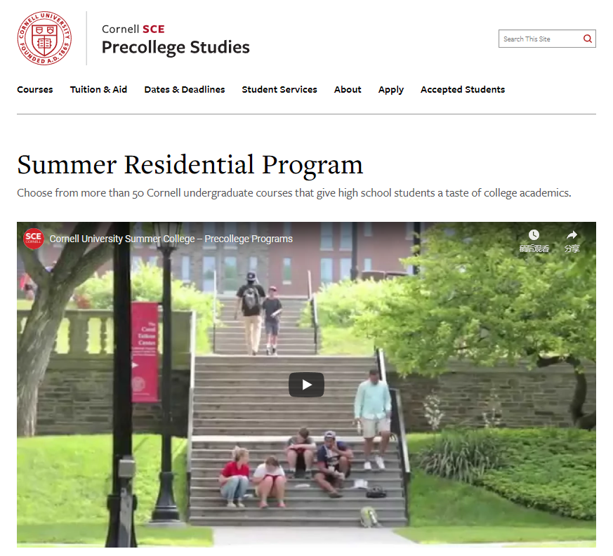康奈尔大学的Summer College,有On-campus courses和Online courses可以选择,为10-12年级的学生开放,提供学分课程。课程时长不同,所得的学分也不同。