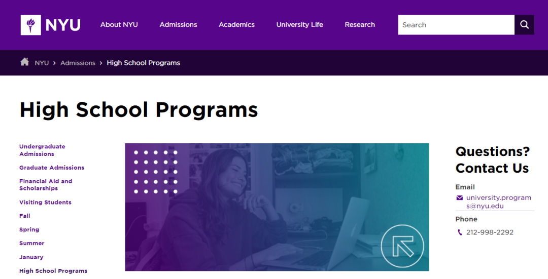 纽约大学提供给高中生的暑期项目非常丰富,有大学先修课程,领导力提升项目,学术类、艺术类、工程类等等,每个项目均有各自的课程周期、申请要求和费用,学生可依据自己的目标、兴趣和行程规划来申请。