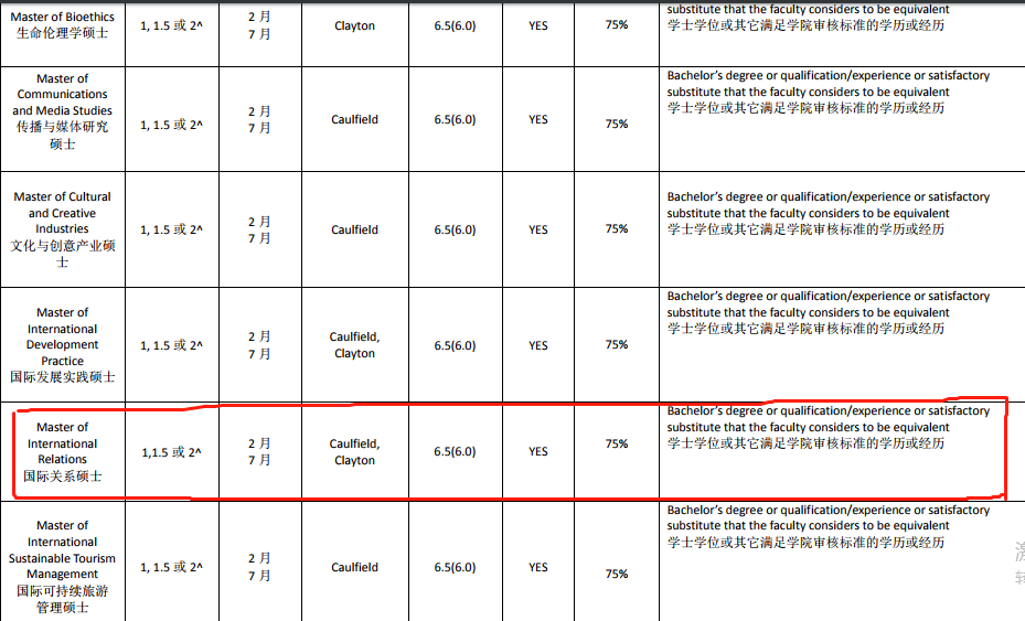 § 1.5年制:要求申请者本科毕业,国际关系或其相近专业(人文社科类专业)毕业