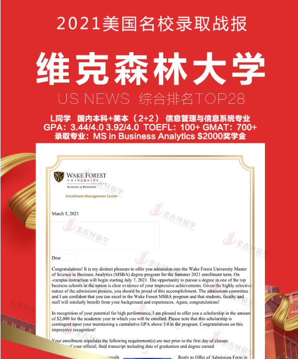 Wake Forest University Master of Science in Business Analytics 录取