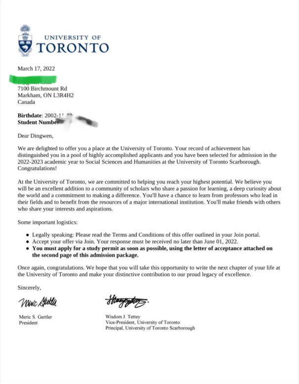 录取学校及专业:多伦多大学主校区,Social Sciences an Humanities专业