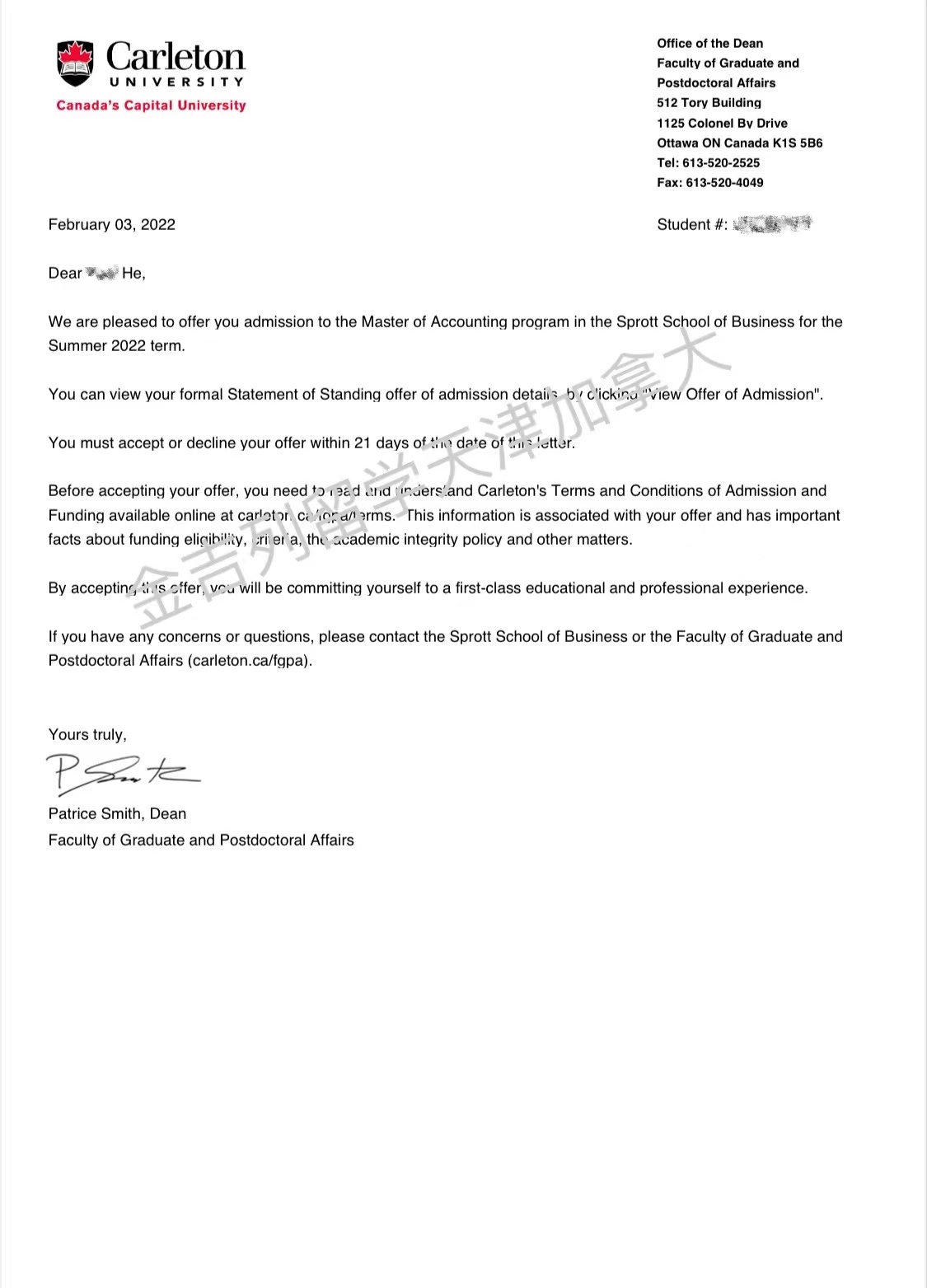 同时,针对学生这边的反馈担心面试的问题,也多方了解了kira和专业相关的一些面试问题和往年一些学生的经历,整理好并发给学生,帮助学生调整答案和整理口语面试的一些关键点。不过卡尔顿大学并未要求学生面试,直接发放了录取offer。