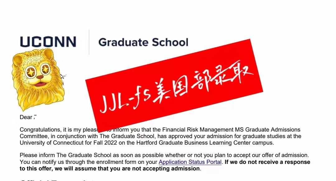 录取结果: University of Connecticut(康涅狄格大学),Master of Science in Financial Risk Management 金融风险管理硕士