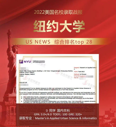 录取结果:纽约大学应用城市科学与信息学