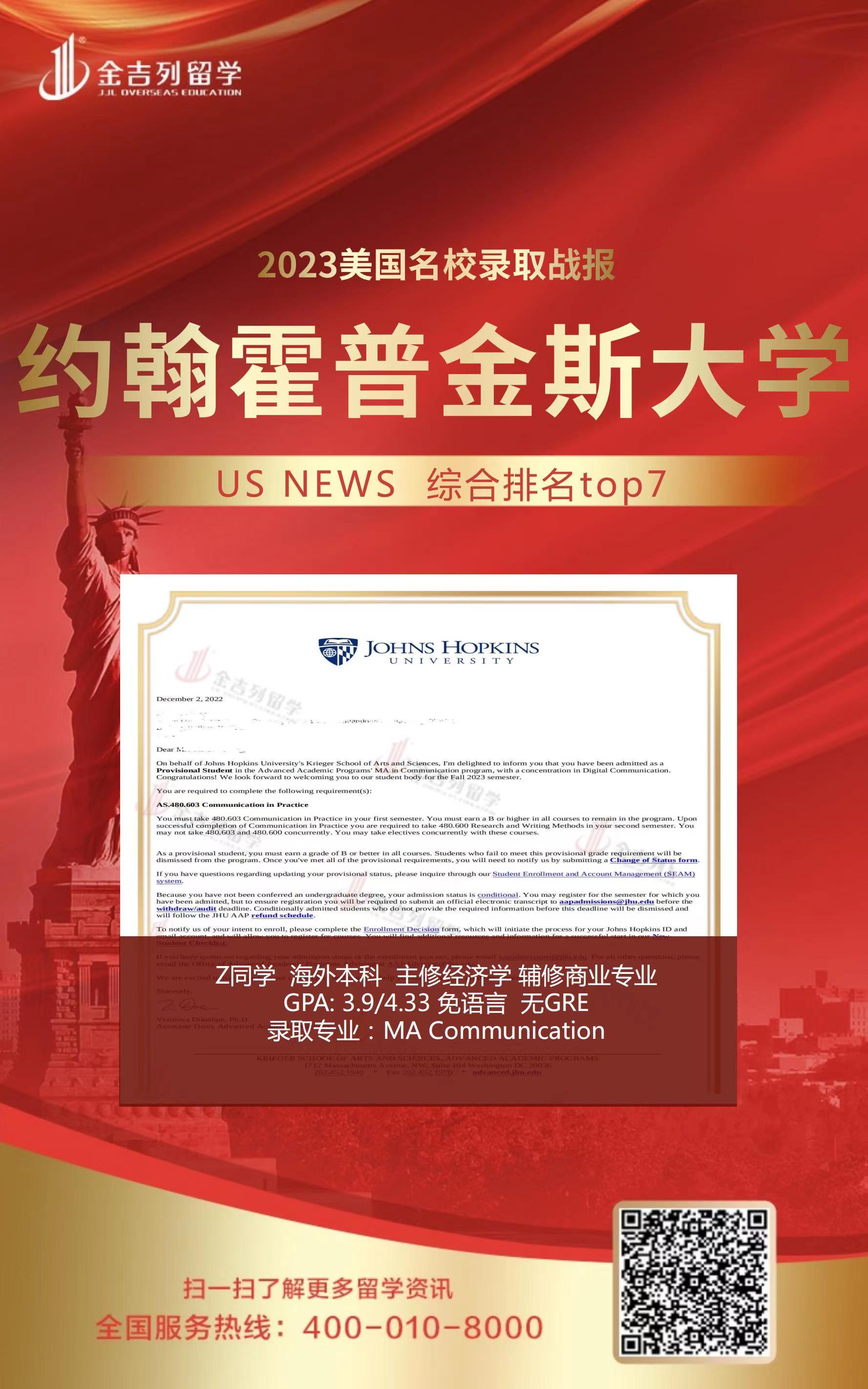 Z同学 海外本科 主修经济学 辅修商业专业