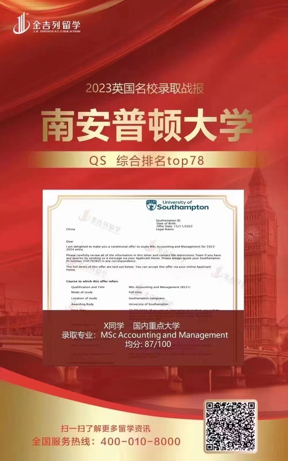 录取专业:MSC Accounting and Management