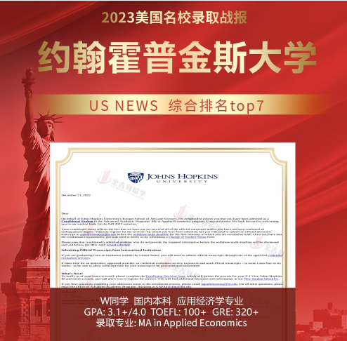 录取结果:约翰霍普金斯大学(全美第7)应用经济学硕士
