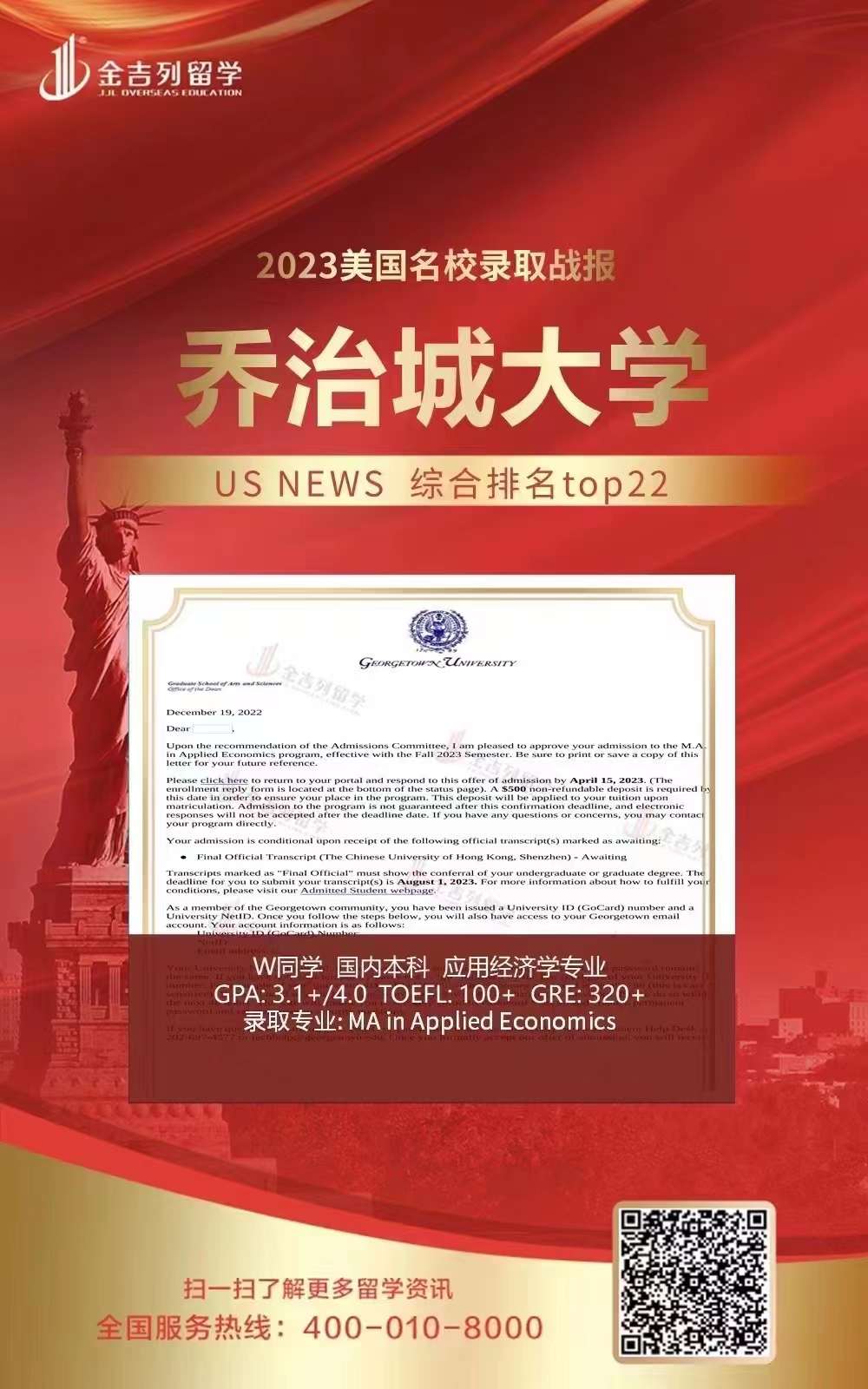 录取专业:MA in Applied Economics