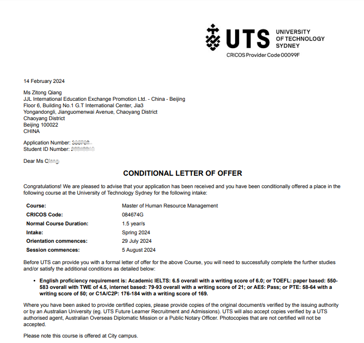 录取:世界排名#90 悉尼科技大学 管理学硕士(获得20%研究生奖学金!!!)