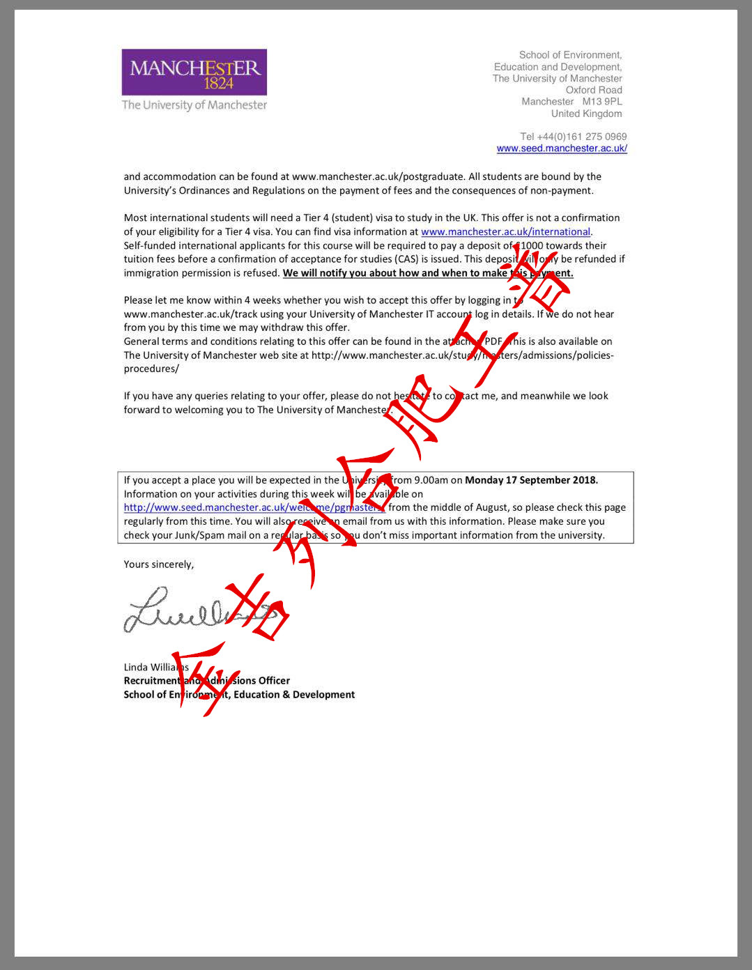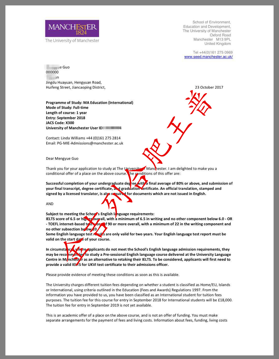 从金吉列留学资深顾问王普老师多年双非院校申请经验来看,专业选择上面是学生能不能拿到满意录取的关键。学生自己本身对于专业这一块没有一个明确的方向,只想着能去英国留学就行。但是根据综合了解学生的留学意向和专业选择这一块,学生自己跟家长这边也愿意去接受,排名靠前的学选择不太热门的专业,排名中等偏上的学校,选择跟学生本身比较符合的教育学专业。学生在咨询我的时候,距离递交申请还有一年的时间。根据学生当时的成绩背景,很难想象学生在一年之后可以拿到曼大、爱大和杜伦的录取通知书。 曼大、爱大和杜伦 作为国内认可度非常高的学校,每年国内很多 211&985 院校的学生都会选择到这所大学继续求学。作为普通二本院校的学生,也有名校梦。所以在剩余的一年留学规划时间,金吉列留学王普老师积极给学生分析院校申请思路,选择专业,背景提升。终于学生从咨询的时候均分 83 分左右,到申请时均分 85 分,中间是学生和金吉列留学王普老师互相配合促进的结果。学生申请材料准备齐全之后,金吉列留学运用 1+8 的服务模式,文案老师,外联老师积极为学生的申请保驾护航。最后,在学生递交 曼大、爱大和杜伦 申请一个月左右时间,学生顺利拿到了心仪的 曼大、爱大和杜伦 录取通知书!!!