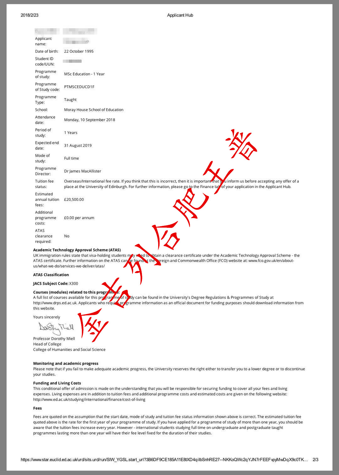 录取结果 : 曼彻斯特大学、爱丁堡大学、杜伦大学