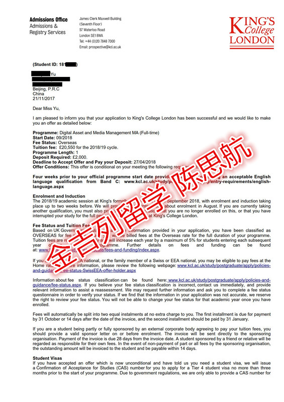 录取院校:伦敦大学国王学院 谢菲尔德 诺丁汉 录取专业: 数字资产与媒体管理