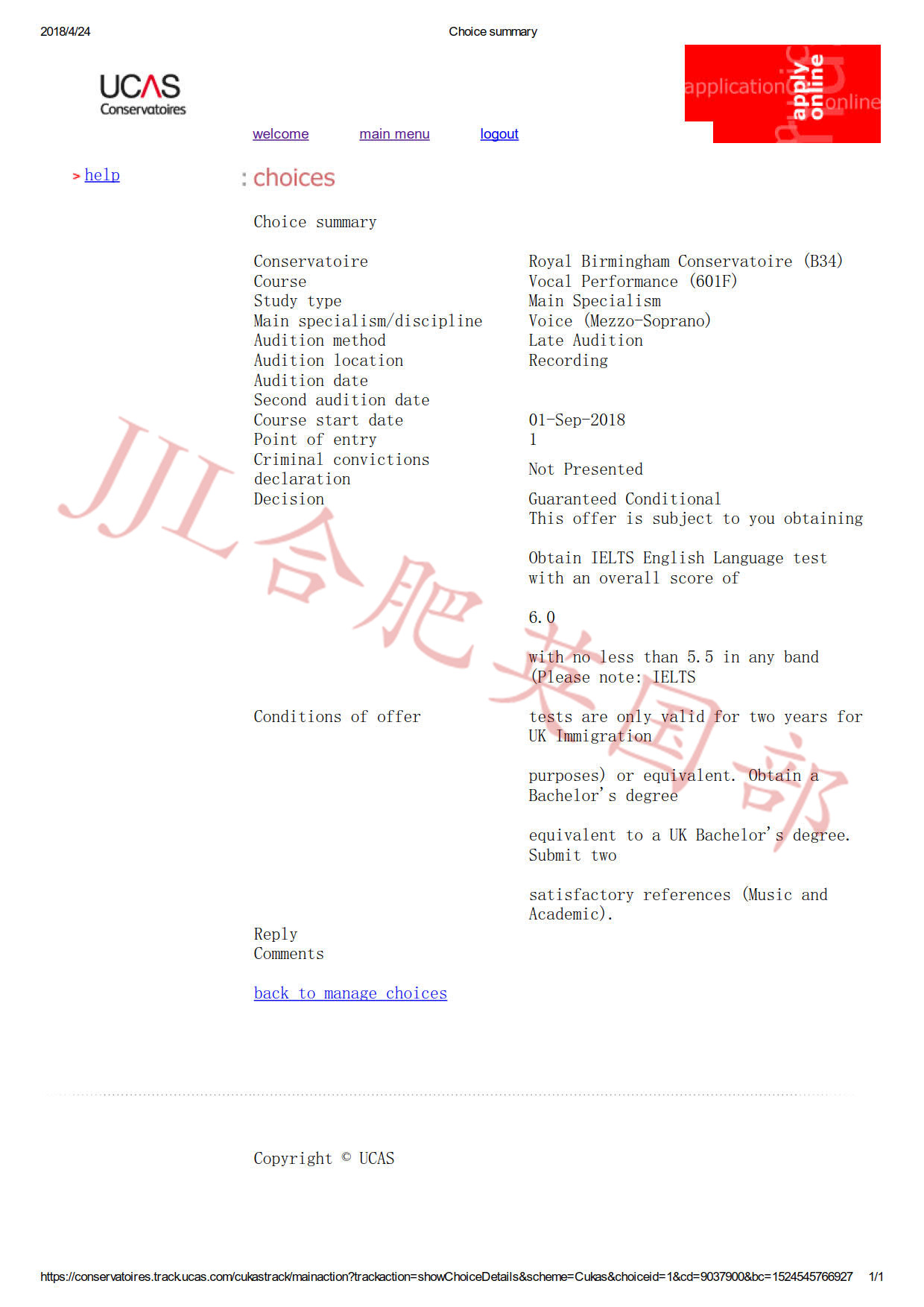 录取院校 :伯明翰皇家音乐学院 、皇家北方音乐学院
