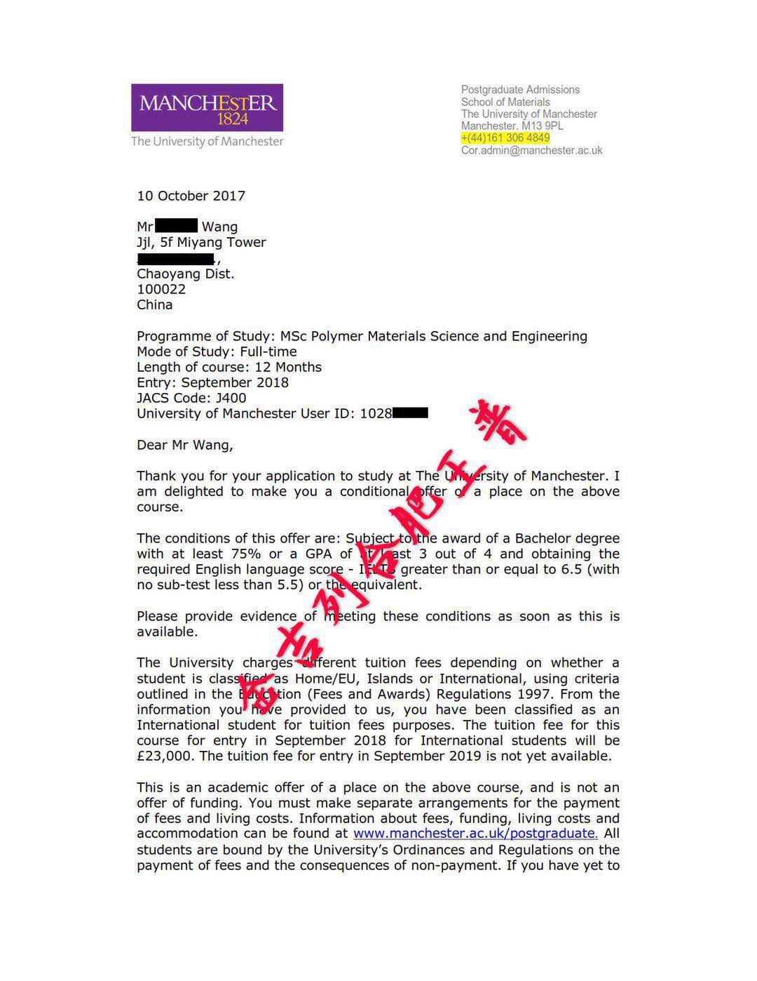 录取结果 : 曼彻斯特大学、谢菲尔德大学