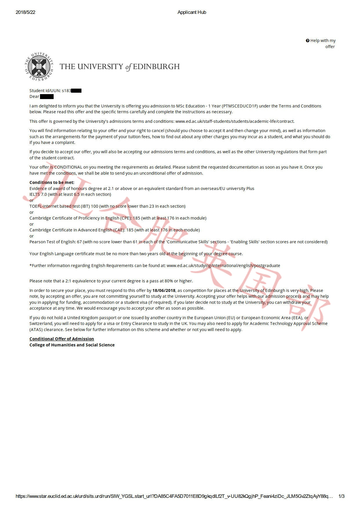 录取院校:爱丁堡大学 诺丁汉大学