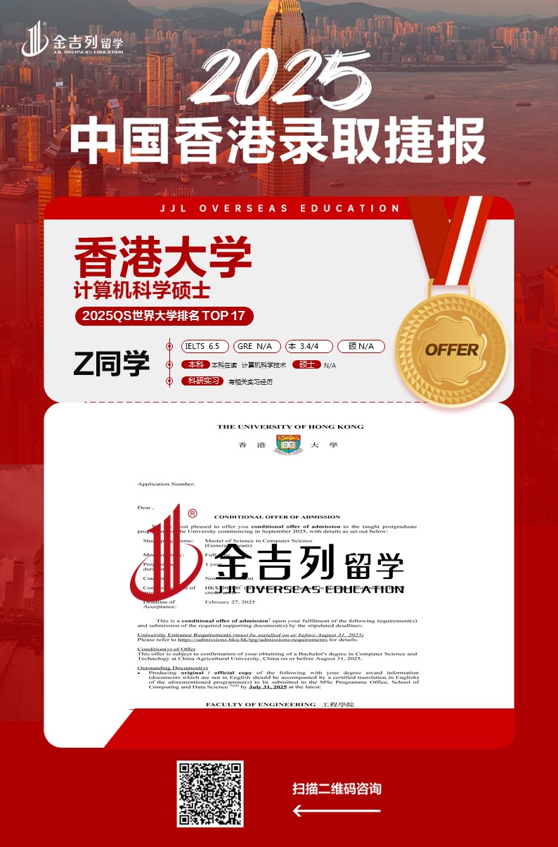 恭喜Z同学被QS17位的香港大学计算机专业录
