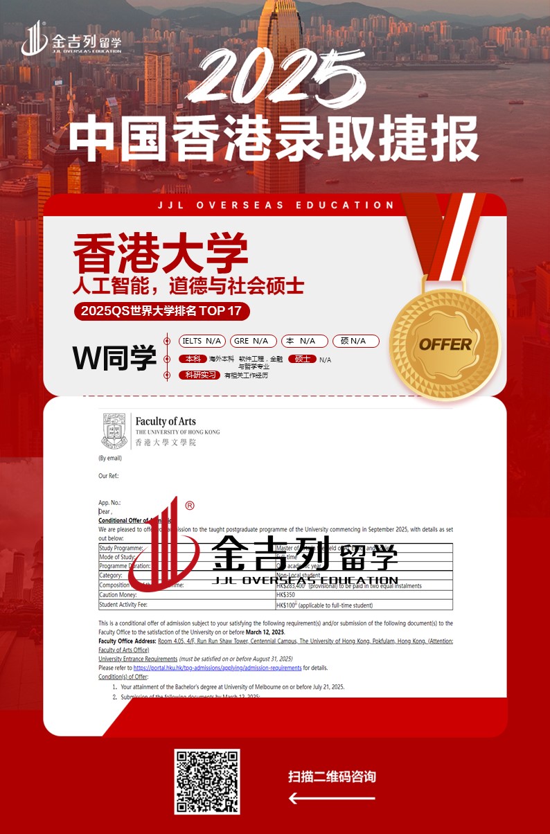 恭喜W同学喜提香港大学人工智能 道德与社会科学硕士录取