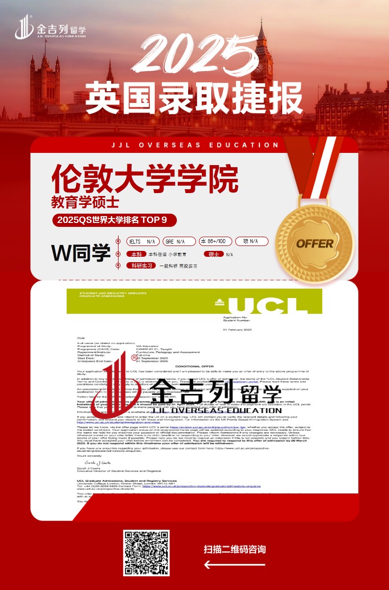 > 恭喜W同学被伦敦大学学院教育学硕士录取
