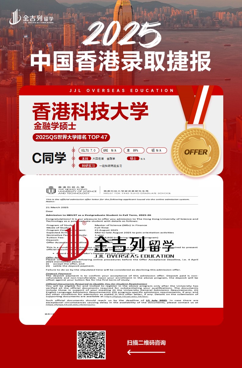 恭喜C同学被香港科大学金融学专业录取