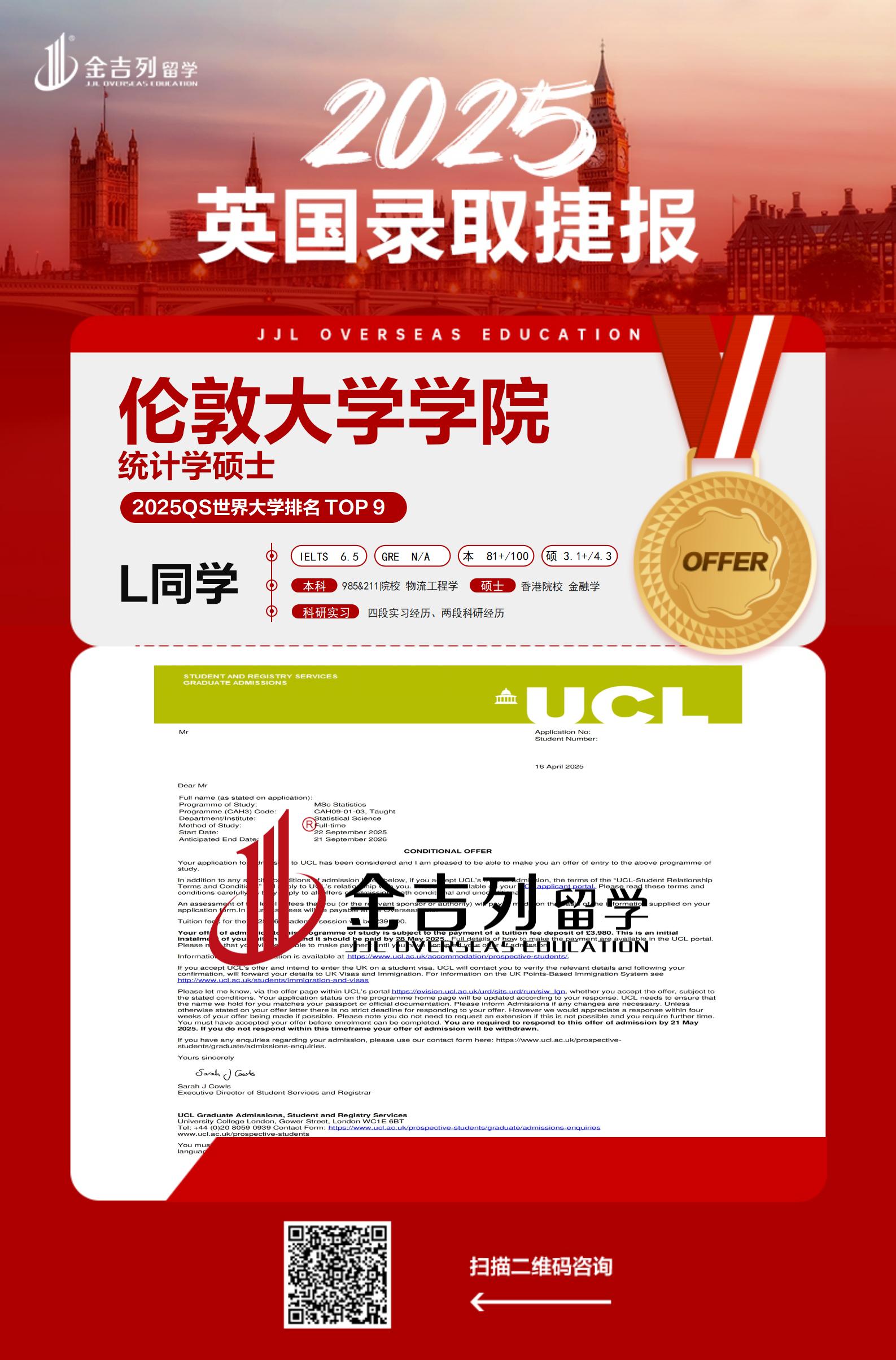 > 恭喜L同学被伦敦大学学院统计学硕士录取