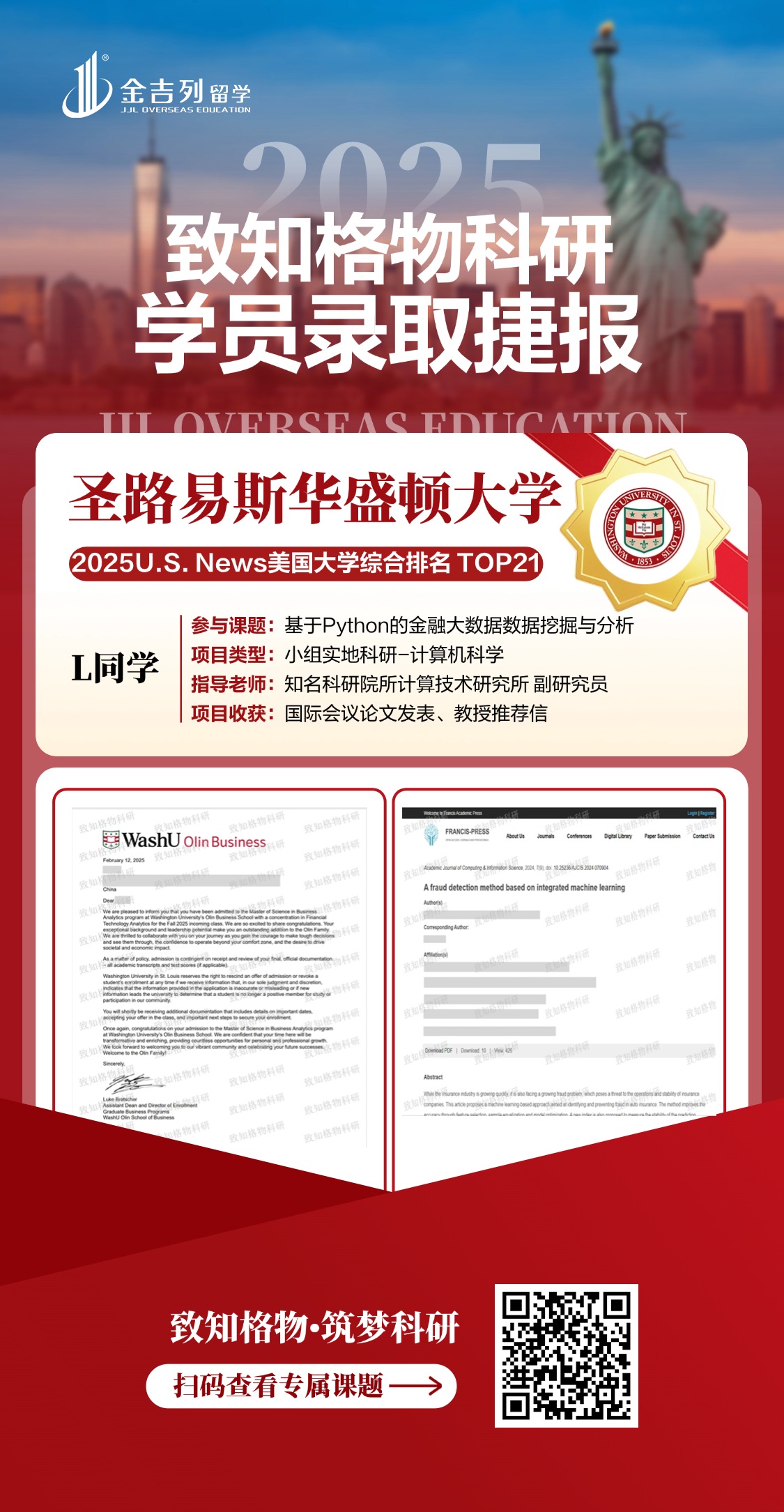 学生:L同学,基于Python的金融大数据数据挖掘与分析录取院校:圣路易斯华盛顿大学录取专业:商业分析专业院校排名:US 21