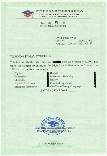 B.成绩单认证:需提交中、英文成绩单原件(需学校主管部门盖章)各一份、复印件各两份;(学校无法出具