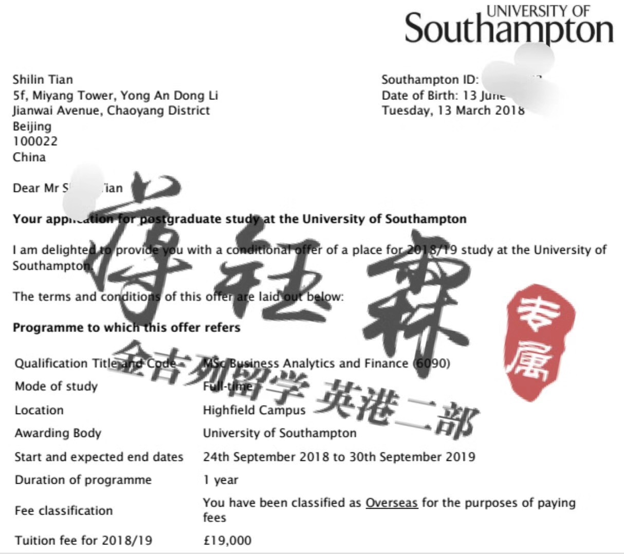 加拿大本科 金融专业 大四在读 成功申请到南安普顿大学 商业分析与金融专业。5.9/9的成绩,免掉了雅思,申请过程中出现各种小插曲,加拿大推荐人无法正常完成推荐信,且学校经历了罢工等情况。因此,蒋老师的建议,能尽早的准备材料,找到蒋老师来做申请规划,将会规避很多申请中的问题和风险,让我们安安稳稳的拿到offer!
