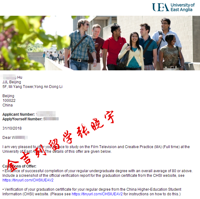 录取结果 : 东英格利亚大学(媒体类专业英国首屈一指 )