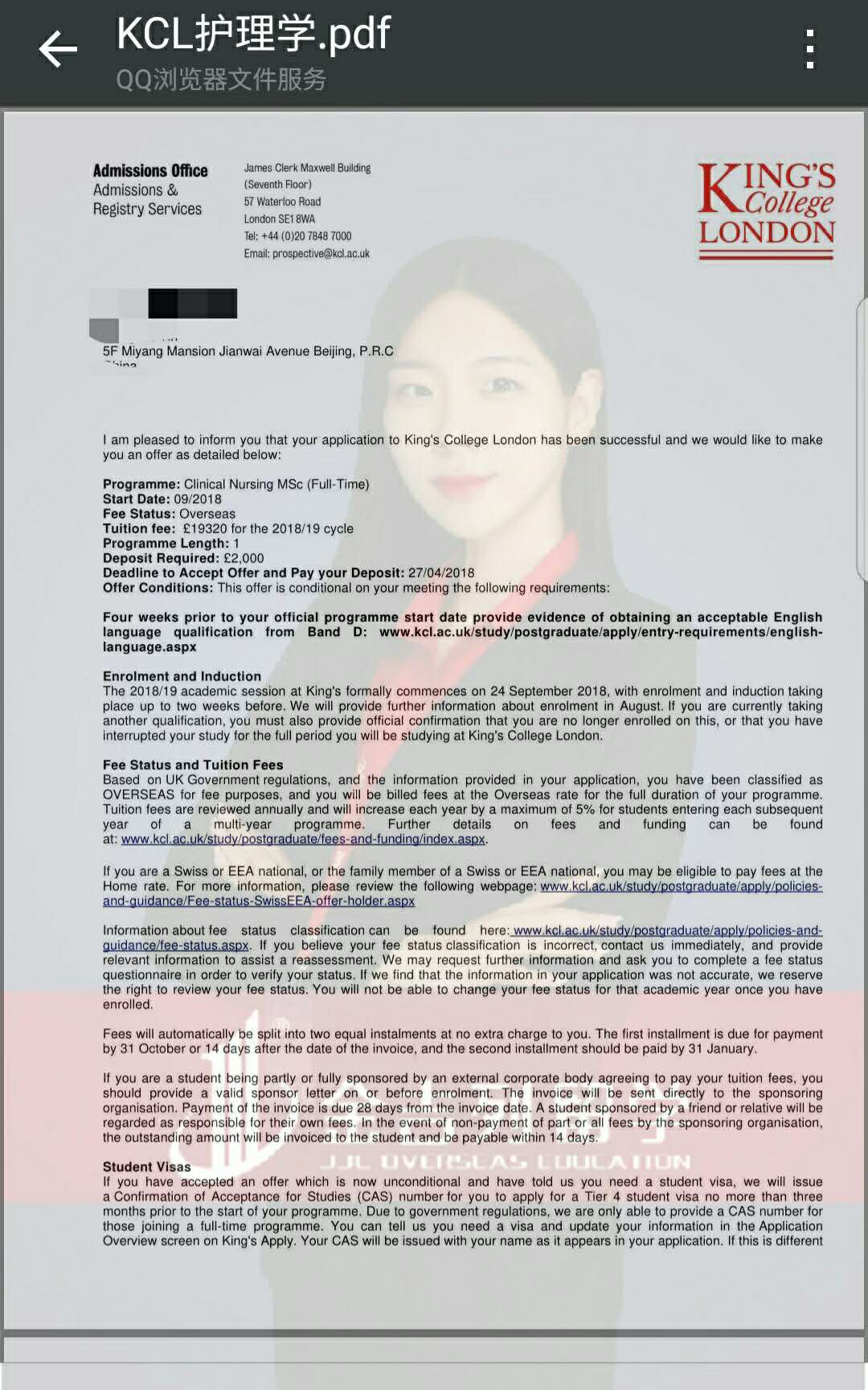 学生的学姐去年从我这里办理成功申请到KCL,学生有出国想法经过推荐第一时间联系到了我。