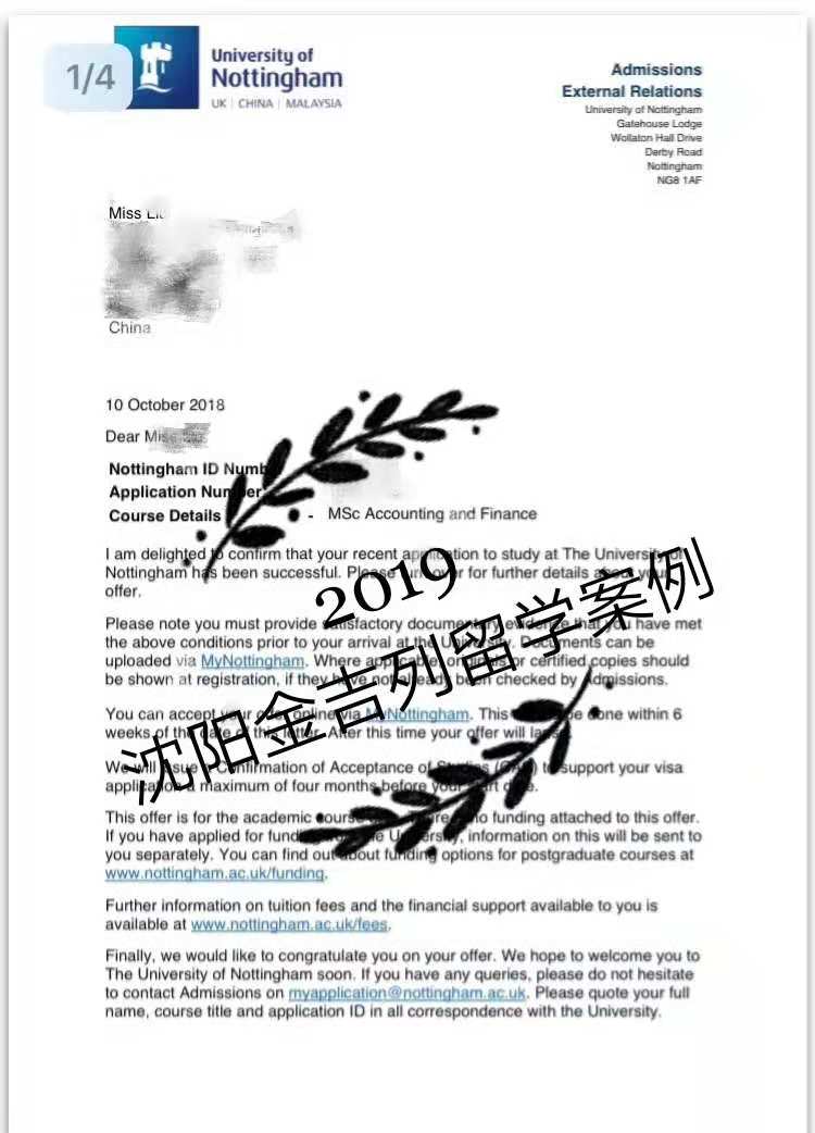 学生在找到侯老师的时候的均分和背景并不是很好(大二),在侯老师的规划和帮助下,刘同学成功的提高了3分的均分,并且雅思从5.5提高到了6.5. 在时间规划方面,侯老师为刘同学详细的规划了每个月份应做的事项,背景提升等等。最后,刘同学也充分的完成了自己的目标,申请到了世界前100的诺丁汉大学和利兹大学。也祝愿刘同学能成功的收获曼彻斯特大学(世界排名31)的通知书。