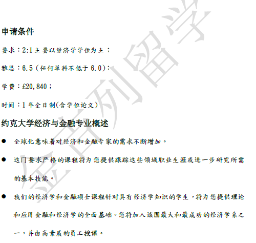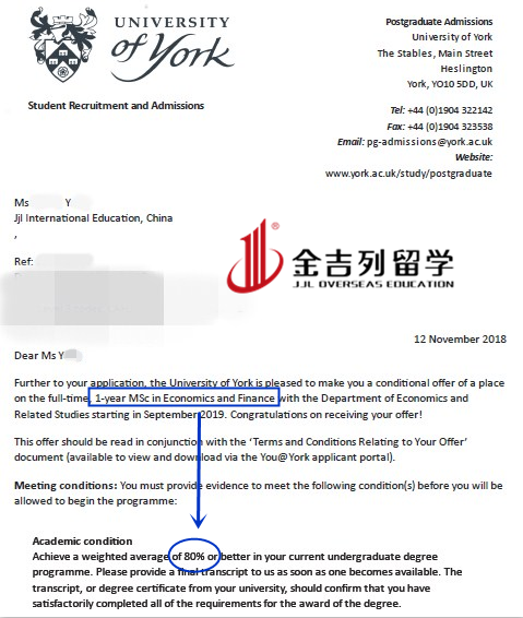 约克大学 经济金融专业 成功录取案例 一枚