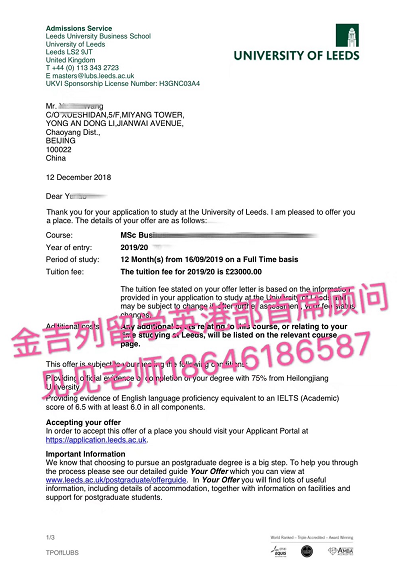录取结果:英国利兹大学(商科排名全英第10)