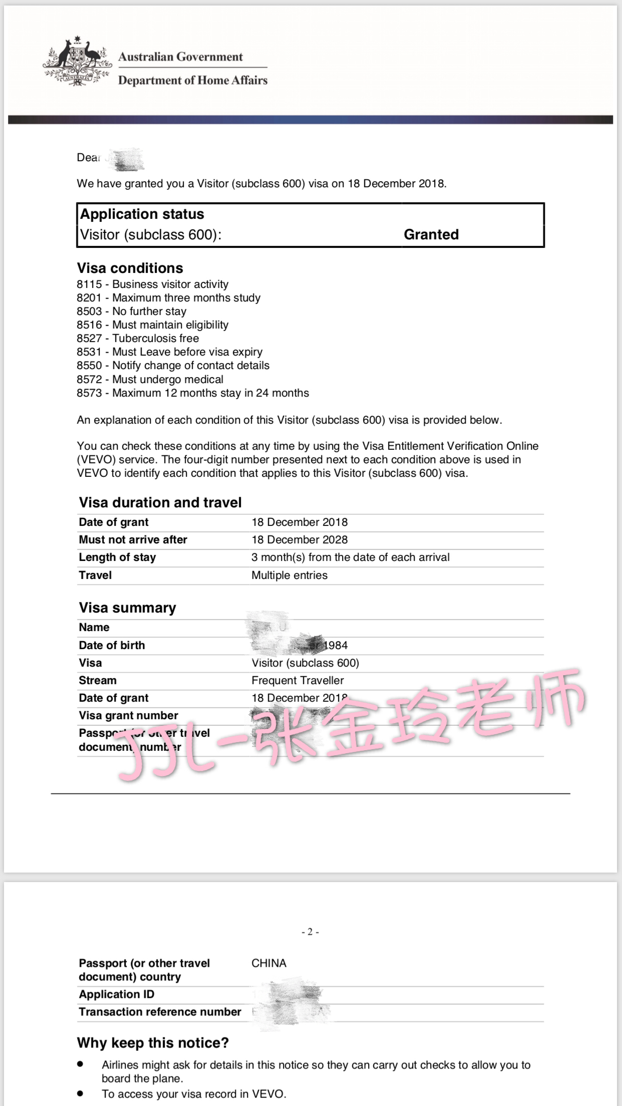 恭喜刘女士澳洲十年旅游探亲签证递交两个工作日无电调获签