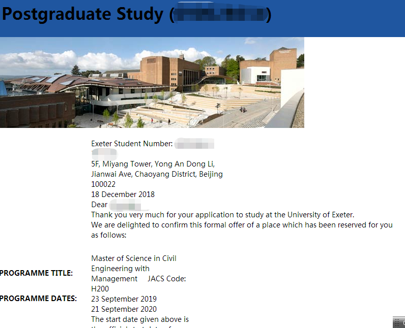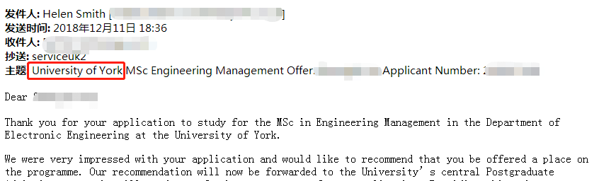 审理周期:申请2019秋季入学,12.05提交网申,陆续在12.11日,12.19日,12.20日获得录取邮件。诺丁汉大学等待面试审核中。(今年英国申请整体变化较大,院校截止时间较往年早,12月份已经算是比较晚递交申请的,所以同学们一定要提早规划,不要踩着ealine申请,英国申请遵循先到先得原则)